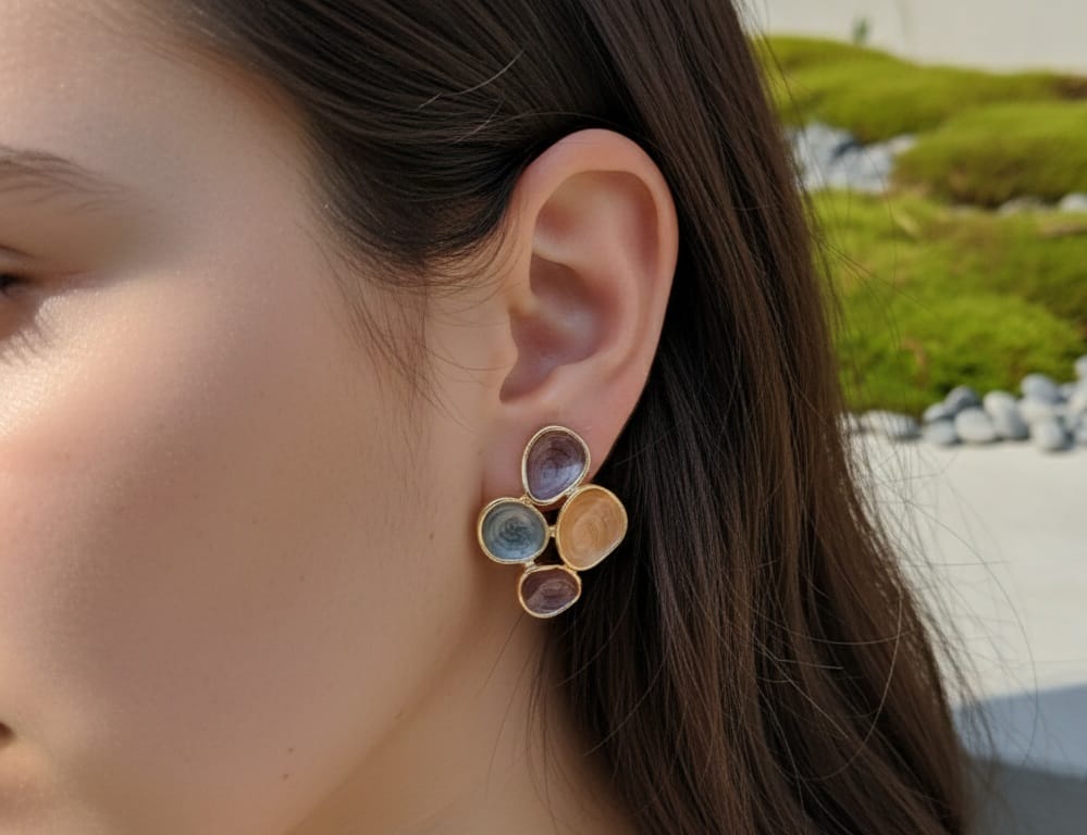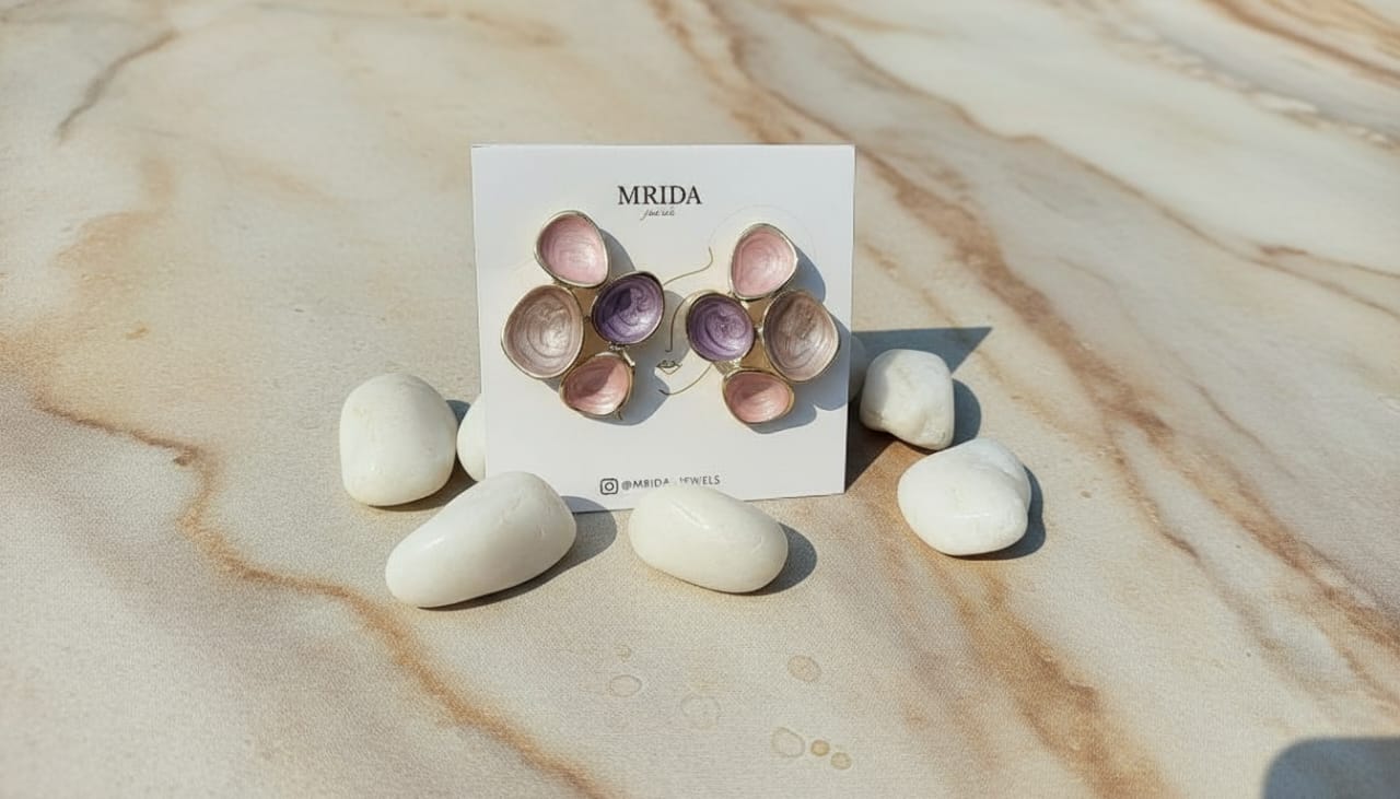 Radiate elegance with the Blossom Aura , a captivating fusion of delicate Color and handcrafted on a golden base. Inspired by nature’s gentle hues and timeless grace, these earrings add a subtle pop of color and artistry to any outfit. Perfect for both everyday sophistication and festive occasions, Blossom Aura are designed to make you glow, just like the first blush of spring. Embrace a unique style that is both modern and enchanting—each piece from MRIDA Jewels tells a story of beauty and individuality.
